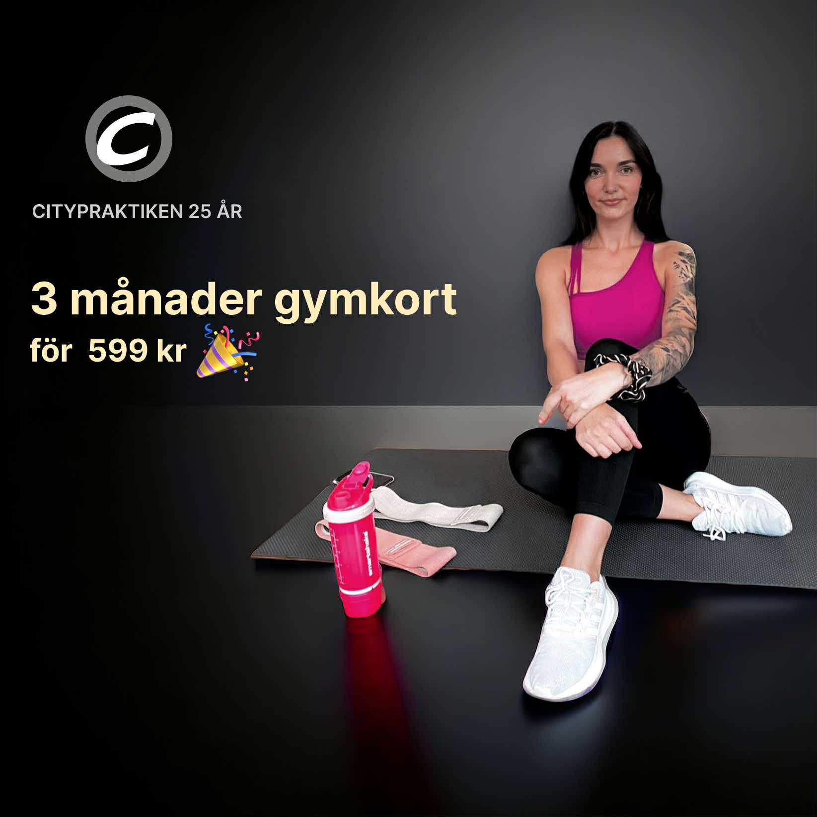 Citypraktiken fyller 25 år och det vill vi fira tillsammans med dig! Fram till 30 november 2025 kan du teckna ett 3-månaderskort för endast 599 kr – helt utan bindningstid. Perfekt för dig som vill komma igång med träningen eller testa vårt gym i lugn och ro.👉 Erbjudandet gäller endast för nya kunder och betalning sker med kort eller Swish.